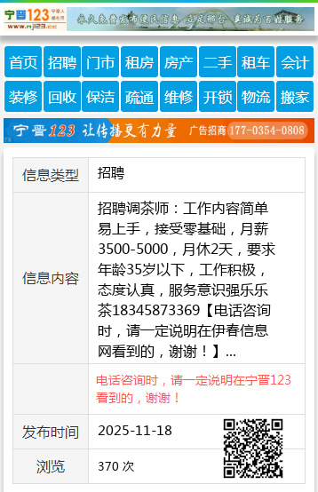 | 防骗提醒: | 伊春信息网(www.yichunba.cn)提醒您:手工活、网络兼职、刷单,都是骗子!凡以各种名义收取费用的都是骗子!找工作是往兜里挣钱,让你往外掏钱的都是骗子!异地招聘请提高警惕,谨防诈骗! |