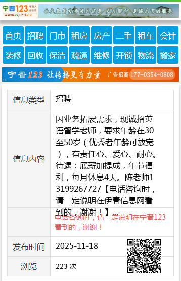 因业务拓展需求,现诚招英语督学老师,要求年龄在30至50岁(优秀者年龄可放宽),有责任心、爱心、耐心。待遇:底薪加提成,年节福利,每月休息4天。陈老师13199267727 【电话咨询时,请一定说明在伊春信息网看到的,谢谢!】 |