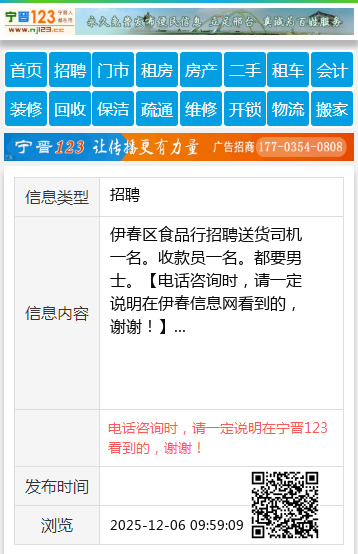 伊春区食品行招聘送货司机一名。收款员一名。都要男士。