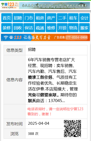 电话咨询时,请一定说明在伊春信息网看到的,谢谢!