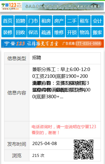 兼职分拣工:早上6:00-12:00工资2100(底薪1900+200满勤)。