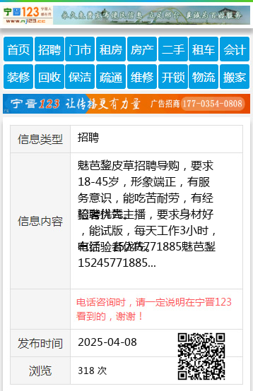 招聘抖音主播,要求身材好,能试版,每天工作3小时,有经验者优先。