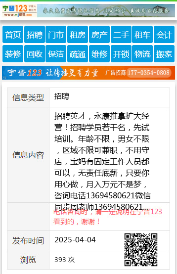 招聘英才,永康推拿扩大经营!招聘学员若干名,先试培训。年龄不限,男女不限,区域不限可兼职,不用守店,宝妈有固定工作人员都可以,无责任底薪,只要你用心做,月入万元不是梦,咨询电话13694580621微信同步周老师13694580621 【电话咨询时,请一定说明在伊春信息网看到的,谢谢!】 |