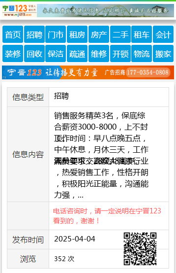 销售服务精英3名,保底综合薪资3000-8000,上不封顶。