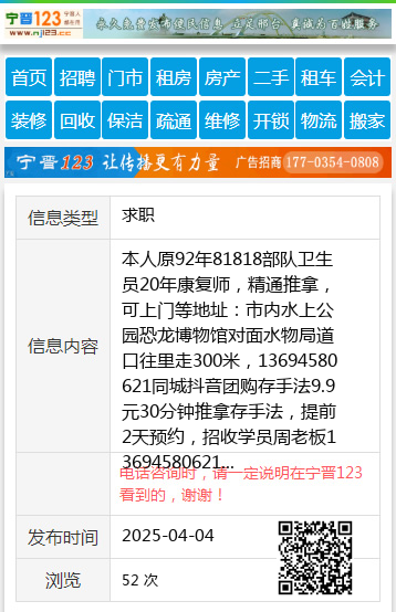 本人原92年81818部队卫生员20年康复师,精通推拿,可上门等地址:市内水上公园恐龙博物馆对面水物局道口往里走300米,13694580621同城抖音团购存手法9.9元30分钟推拿存手法,提前2天预约,招收学员周老板13694580621 【电话咨询时,请一定说明在伊春信息网看到的,谢谢!】 |