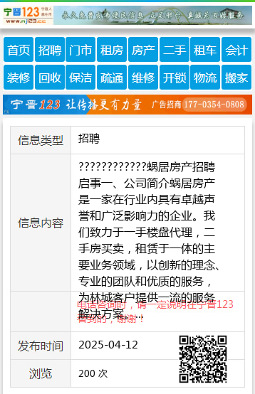 ????????????蜗居房产招聘启事一、公司简介蜗居房产是一家在行业内具有卓越声誉和广泛影响力的企业。我们致力于一手楼盘代理,二手房买卖,租赁于一体的主要业务领域,以创新的理念、专业的团队和优质的服务,为林城客户提供一流的服务解决方案。二、招聘职位房产经纪人/自媒体经纪人房产达人/房产大咖三、职位要求1.热爱房产销售工作,有强烈的进取心。2.具备良好的沟通能力和服务意识。3.能承受一定工作压力,勇于挑战高佣金。四、福利待遇1.优厚的提成奖励。2.专业培训与晋升机会。3.周休两天周六周日五、应聘方式电话☎(微信同步)15704589933/15734583769伊春蜗居房产平台2024年9月25日宝哥15704589933 【电话咨询时,请一定说明在伊春信息网看到的,谢谢!】 |