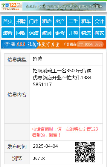 招聘刷碗工一名3500元待遇优厚新店开业不忙大伟13845851117