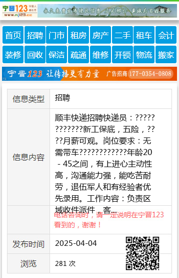 顺丰快递招聘快递员:????????????新工保底,五险,????月薪可观。岗位要求:无需带车????????????年龄20-45之间,有上进心主动性高,沟通能力强,能吃苦耐劳,退伍军人和有经验者优先录用。工作内容:负责区域收件派件,客户维护工作地点:伊春市伊美区亲水家园3号楼☎️:15665955991另招聘短期派件员1.8一票。程彦霖18249802511 【电话咨询时,请一定说明在伊春信息网看到的,谢谢!】 |