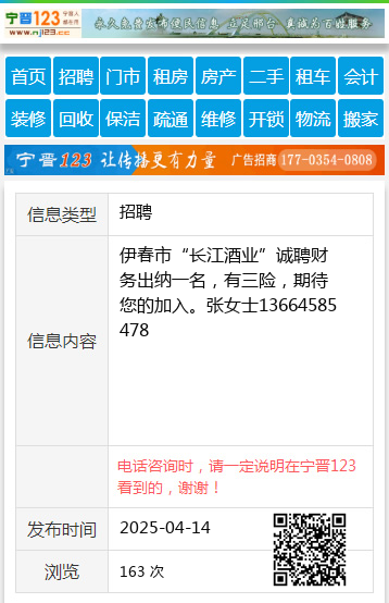 伊春市“长江酒业”诚聘财务出纳一名,有三险,期待您的加入。张女士13664585478