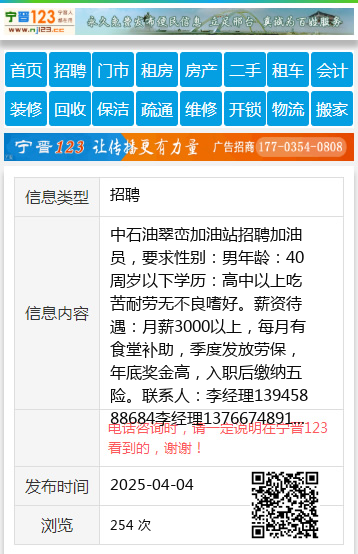 中石油翠峦加油站招聘加油员,要求性别:男年龄:40周岁以下学历:高中以上吃苦耐劳无不良嗜好。薪资待遇:月薪3000以上,每月有食堂补助,季度发放劳保,年底奖金高,入职后缴纳五险。联系人:李经理13945888684李经理13766748911