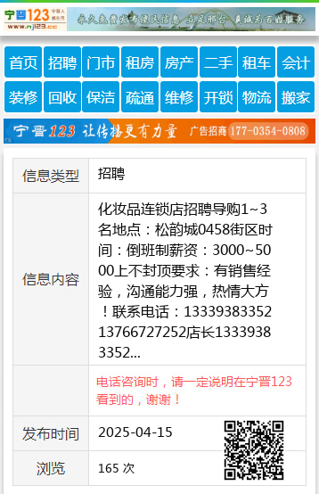 化妆品连锁店招聘导购1~3名地点:松韵城0458街区时间:倒班制薪资:3000~5000上不封顶要求:有销售经验,沟通能力强,热情大方!联系电话:1333938335213766727252店长13339383352 【电话咨询时,请一定说明在伊春信息网看到的,谢谢!】 |