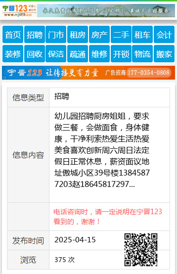 幼儿园招聘厨房姐姐,要求做三餐,会做面食,身体健康,干净利索热爱生活热爱美食喜欢创新周六周日法定假日正常休息,薪资面议地址傲城小区39号楼13845877203赵18645817297 【电话咨询时,请一定说明在伊春信息网看到的,谢谢!】 |