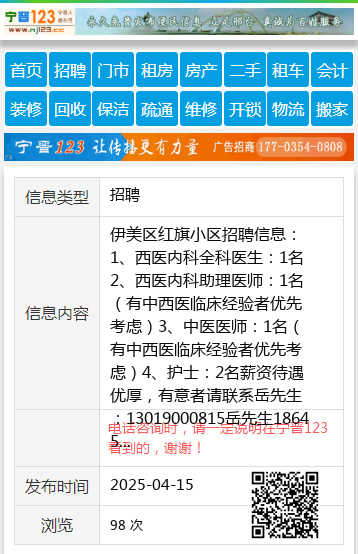 伊美区红旗小区招聘信息:1、西医内科全科医生:1名2、西医内科助理医师:1名(有中西医临床经验者优先考虑)3、中医医师:1名(有中西医临床经验者优先考虑)4、护士:2名薪资待遇优厚,有意者请联系岳先生:13019000815岳先生18645866789 【电话咨询时,请一定说明在伊春信息网看到的,谢谢!】 |