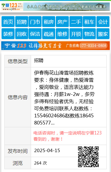 伊春梅花山滑雪场招聘教练要求:身体健康,热爱滑雪,爱岗敬业,语言表达能力强待遇:月薪1w-2w,多劳多得有经验者优先,无经验可免费培训联系人赵教练:15546024686赵教练18645805577 【电话咨询时,请一定说明在伊春信息网看到的,谢谢!】 |