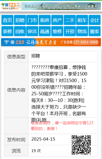 ????????泰康招募,想挣钱的来吧带薪学习,享受1500元学习津贴!对✔1500,1500你没听错????招聘年龄:25-50周岁????工作时间:每天8:30—10:30[胜利]选择大于努力,只是缺少一个平台!本月开班,名额有限[礼物]参加面试就有精美礼品????????咨询电话:13766737044姚18945886922 【电话咨询时,请一定说明在伊春信息网看到的,谢谢!】 |