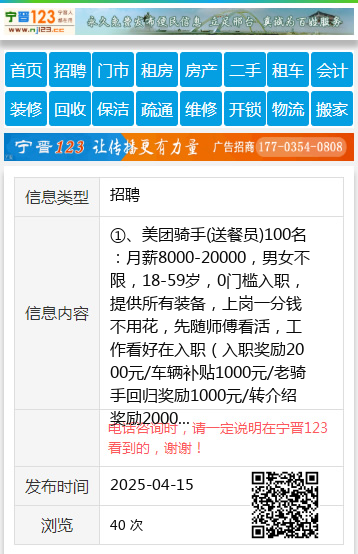 ①、美团骑手(送餐员)100名:月薪8000-20000,男女不限,18-59岁,0门槛入职,提供所有装备,上岗一分钱不用花,先随师傅看活,工作看好在入职(入职奖励2000元/车辆补贴1000元/老骑手回归奖励1000元/转介绍奖励2000元)。②兼职骑手:月薪3000-5000以上(时间:午饭口+晚饭口)。王女士18504581458 【电话咨询时,请一定说明在伊春信息网看到的,谢谢!】 |