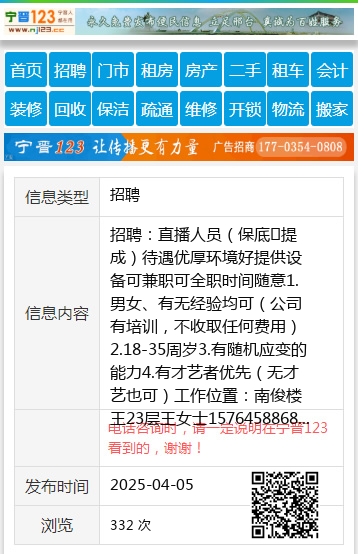 招聘:直播人员(保底➕提成)待遇优厚环境好提供设备可兼职可全职时间随意1.男女、有无经验均可(公司有培训,不收取任何费用)2.18-35周岁3.有随机应变的能力4.有才艺者优先(无才艺也可)工作位置:南俊楼王23层王女士15764588686 【电话咨询时,请一定说明在伊春信息网看到的,谢谢!】 |