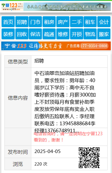 中石油翠峦加油站招聘加油员,要求性别:男年龄:40周岁以下学历:高中无不良嗜好薪资待遇:月薪3000加上不封顶每月有食堂补助季度发放劳保年底有奖金入职后缴纳五险联系人:李经理联系电话:13945888684李经理13766748911 【电话咨询时,请一定说明在伊春信息网看到的,谢谢!】 |