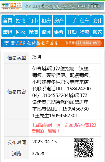 伊春塔斯汀汉堡招聘:汉堡师傅、裹粉师傅、配餐师傅、小师妹等多种职位等您来店长联系电话☎️:15842420004/13104552204塔斯汀汉堡伊春店期待您的加盟店里本地电话☎️:15094567301王先生15094567301 【电话咨询时,请一定说明在伊春信息网看到的,谢谢!】 |
