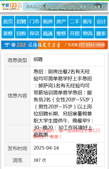 急招:厨房出餐2名有无经验均可简单易学好上手急招:披萨岗1名有无经验均可带薪培训简单易学急招:服务员2名(女性20岁~55岁)(男性20岁~35岁)以上岗位招聘长期、另招寒暑假兼职大学生提供午、晚餐早9:30~晚20:30工作环境好上班氛围轻松底薪+满勤奖+奖金+工龄工资+每月福利卡+年终奖闫蕊13091481616 【电话咨询时,请一定说明在伊春信息网看到的,谢谢!】 |
