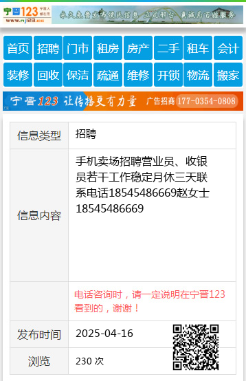 手机卖场招聘营业员、收银员若干工作稳定月休三天联系电话18545486669赵女士18545486669