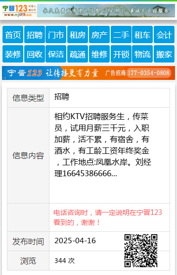 相约KTV招聘服务生,传菜员,试用月薪三千元,入职加薪,活不累,有宿舍,有酒水,有工龄工资年终奖金,工作地点:凤凰水岸。刘经理16645386666 【电话咨询时,请一定说明在伊春信息网看到的,谢谢!】 |