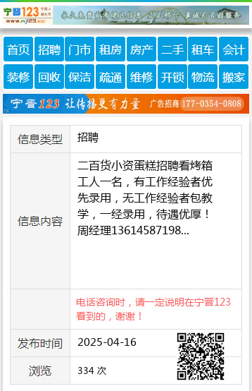 二百货小资蛋糕招聘看烤箱工人一名,有工作经验者优先录用,无工作经验者包教学,一经录用,待遇优厚!周经理13614587198 【电话咨询时,请一定说明在伊春信息网看到的,谢谢!】 |