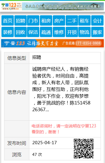 诚聘房产经纪人,有销售经验者优先,时间自由,高提成,新人有老人带,团队氛围好,互帮互助,正向利他,阳光下作业,欢迎有梦想,勇于挑战的你!陈15145826367 【电话咨询时,请一定说明在伊春信息网看到的,谢谢!】 |