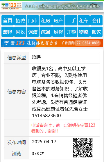 收银员1名,高中及以上学历,专业不限。2.熟练使用电脑及各类收银设备。3.具备基本的财务知识,了解收银流程。4.有销售经验者优先考虑。5.持有普通健康证或食品健康证者优先曹女士15145823600 【电话咨询时,请一定说明在伊春信息网看到的,谢谢!】 |