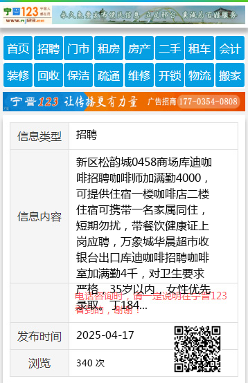 新区松韵城0458商场库迪咖啡招聘咖啡师加满勤4000,可提供住宿一楼咖啡店二楼住宿可携带一名家属同住,短期勿扰,带餐饮健康证上岗应聘,万象城华晨超市收银台出口库迪咖啡招聘咖啡室加满勤4千,对卫生要求严格,35岁以内,女性优先录取。丁18445838001 【电话咨询时,请一定说明在伊春信息网看到的,谢谢!】 |
