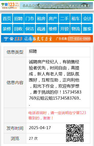 诚聘房产经纪人,有销售经验者优先,时间自由,高提成,新人有老人带,团队氛围好,互帮互助,正向利他,阳光下作业,欢迎有梦想,勇于挑战的你!15734583769云姐云姐15734583769 【电话咨询时,请一定说明在伊春信息网看到的,谢谢!】 |