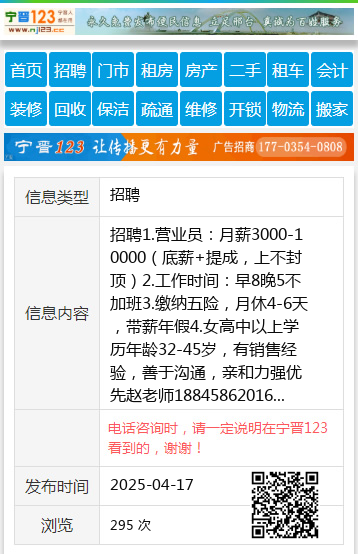 招聘1.营业员:月薪3000-10000(底薪+提成,上不封顶)2.工作时间:早8晚5不加班3.缴纳五险,月休4-6天,带薪年假4.女高中以上学历年龄32-45岁,有销售经验,善于沟通,亲和力强优先赵老师18845862016 【电话咨询时,请一定说明在伊春信息网看到的,谢谢!】 |