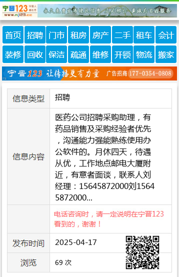 医药公司招聘采购助理,有药品销售及采购经验者优先,沟通能力强能熟练使用办公软件的。月休四天,待遇从优,工作地点邮电大厦附近,有意者面谈,联系人刘经理:15645872000刘15645872000 【电话咨询时,请一定说明在伊春信息网看到的,谢谢!】 |