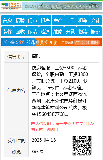 工作地点:七公里辽西物流西侧,水岸公馆南环红绿灯新峰建筑材料公司院内。极兔15604587768 【电话咨询时,请一定说明在伊春信息网看到的,谢谢!】 |