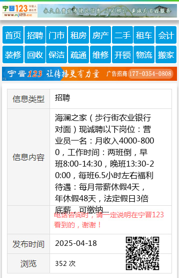 海澜之家(步行街农业银行对面)现诚聘以下岗位:营业员一名:月收入4000-8000,工作时间:两班倒,早班8:00-14:30,晚班13:30-20:00,每班6.5小时左右福利待遇:每月带薪休假4天,年休假48天,法定假日3倍底薪,可缴纳社保岗位要求:18-30周岁,初中及以上学历,形象端正,身体健康,语言表达能力好,态度积极女士13045258778 【电话咨询时,请一定说明在伊春信息网看到的,谢谢!】 |