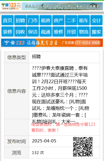 ????伊春大泰康直聘,泰有诚意????面试通过三天半培训!2月22日开班????每天工作2小时,月薪保底1500元;达标多享三个月;????现在面试送豪礼:[礼物]面试礼:龙禧抱枕一个;[礼物]缴费礼:龙年瓷碗一套;[礼物]培训礼:大米一袋[礼物]数量有限,先到先得????品牌齐上阵,职为你来,火热报名中13766737044(微信同步)姚18945886922 【电话咨询时,请一定说明在伊春信息网看到的,谢谢!】 |