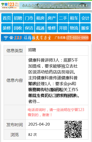 健康科普讲师3人:底薪5千加提成,要求能够独立去社区谈活动给药店店员培训。主持健康科普传递健康科普知识。