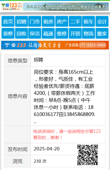 岗位要求:身高165cm以上,形象好,气质佳,有工业经验者优先!薪资待遇:底薪4200,(带薪休假两天)工作时间:早8点-晚5点(中午休息一小时)联系电话:18610036177田13845868809 【电话咨询时,请一定说明在伊春信息网看到的,谢谢!】 |