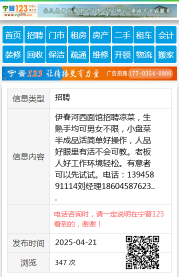 电话咨询时,请一定说明在伊春信息网看到的,谢谢!