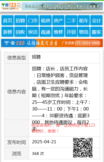 招聘:店长,店员工作内容:日常维护顾客,货品管理,店面卫生应聘要求:会电脑,有一定的沟通能力,长期(短期勿扰)年龄要求:25—45岁工作时间:上午7:30——11:00;下午1:00——4:30薪资待遇:底薪3000,其他待遇面议,每月2天休息工作地点:铁力双丰应聘☎️:15245889990(微信同步)刘女士13766736677 【电话咨询时,请一定说明在伊春信息网看到的,谢谢!】 |