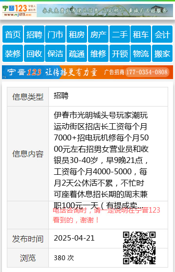伊春市光明城头号玩家潮玩运动街区招店长工资每个月7000+招电玩机修每个月5000元左右招男女营业员和收银员30-40岁,早9晚21点,工资每个月4000-5000,每月2天公休活不累,不忙时可座着休息招长期的周末兼职100元一天(有提成卖卡的5%)(18-40岁)另招寒假男女工早9晚21点(每个月2500+)杨总18804644777 【电话咨询时,请一定说明在伊春信息网看到的,谢谢!】 |