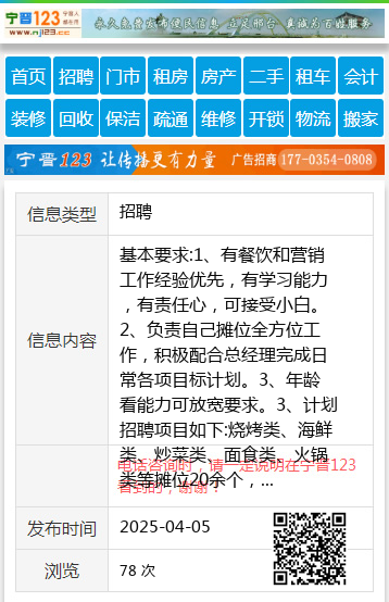 基本要求:1、有餐饮和营销工作经验优先,有学习能力,有责任心,可接受小白。2、负责自己摊位全方位工作,积极配合总经理完成日常各项目标计划。3、年龄看能力可放宽要求。3、计划招聘项目如下:烧烤类、海鲜类、炒菜类、面食类、火锅类等摊位20余个,具体面议。工作时间:10:00-21:00(具体时间面议)薪资待遇:无责任底薪3000+提成,提成按照你负责摊位流水情况面议,待遇丰厚。一夜暴富请绕道。真诚找志同道合、踏实肯干、有上进心,不干现状的共同创业!联系人:孔经理13945891711/18073994567孔经理18204581828 【电话咨询时,请一定说明在伊春信息网看到的,谢谢!】 |