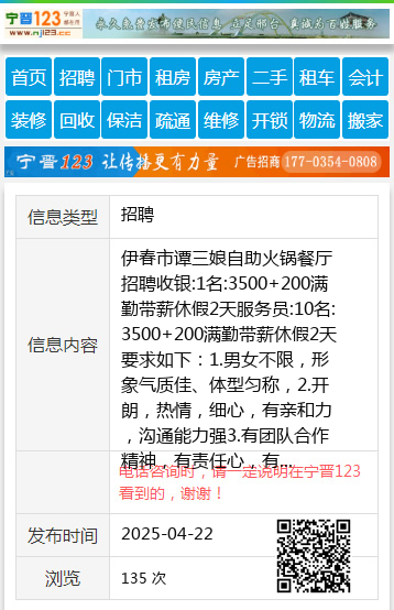 伊春市谭三娘自助火锅餐厅招聘收银:1名:3500+200满勤带薪休假2天服务员:10名:3500+200满勤带薪休假2天要求如下:1.男女不限,形象气质佳、体型匀称,2.开朗,热情,细心,有亲和力,沟通能力强3.有团队合作精神,有责任心,有服务意识4.踏实,稳重,务实,勤恳,积极向上我希望可以组建一个小团队,核心的目的就是赚钱还有愉快的工作。期待你的来电咨询:18745888819王店长王店长18745888819 【电话咨询时,请一定说明在伊春信息网看到的,谢谢!】 |