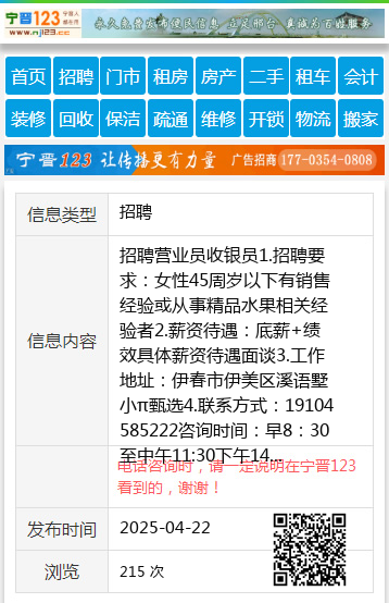 招聘营业员收银员1.招聘要求:女性45周岁以下有销售经验或从事精品水果相关经验者2.薪资待遇:底薪+绩效具体薪资待遇面谈3.工作地址:伊春市伊美区溪语墅小π甄选4.联系方式:19104585222咨询时间:早8:30至中午11:30下午14:00至晚22:00郑先生19104585222 【电话咨询时,请一定说明在伊春信息网看到的,谢谢!】 |