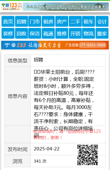 ☘️华莱士招前台,后厨????薪资:小时计算,全职:固定班时8小时,额外多劳多得,法定假日补贴80元,每年还有6个月的高温,高寒补贴,每天补助3元。每月3000左右????要求:身体健康,干活干净利索,长期稳定,有责任心,公司有岗位详细培训,2/3天就能上手,晋升空间大,????招聘电话:13384587525(微信同号)地址:世纪园华莱士汉堡店徐女士13384587525 【电话咨询时,请一定说明在伊春信息网看到的,谢谢!】 |