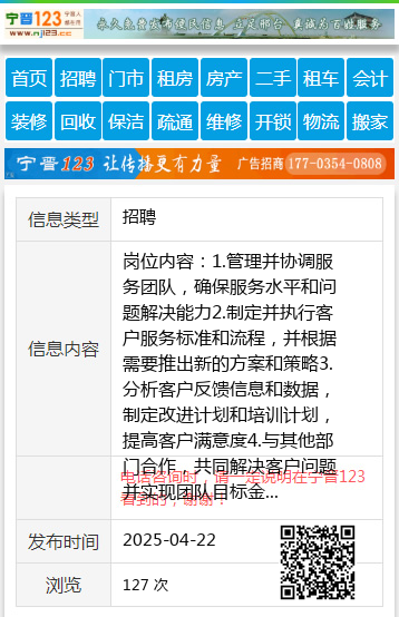 岗位内容:1.管理并协调服务团队,确保服务水平和问题解决能力2.制定并执行客户服务标准和流程,并根据需要推出新的方案和策略3.分析客户反馈信息和数据,制定改进计划和培训计划,提高客户满意度4.与其他部门合作,共同解决客户问题并实现团队目标金总17645597576