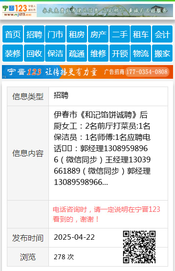 伊春市《和记馅饼诚聘》后厨女工:2名前厅打菜员:1名保洁员:1名师傅:1名应聘电话☎️:郭经理13089598966(微信同步)王经理13039661889(微信同步)郭经理13089598966 【电话咨询时,请一定说明在伊春信息网看到的,谢谢!】 |