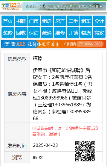 伊春市《和记馅饼诚聘》后厨女工:2名前厅打菜员:1名保洁员:1名粥师傅:1名(男女不限)应聘电话☎️:郭经理13089598966(微信同步)王经理13039661889(微信同步)郭经理13089598966 【电话咨询时,请一定说明在伊春信息网看到的,谢谢!】 |
