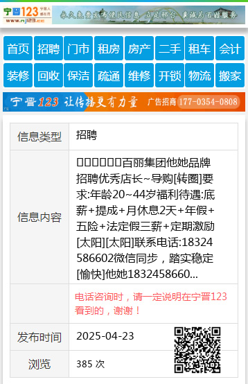 ⚠️⚠️⚠️百丽集团他她品牌招聘优秀店长~导购[转圈]要求:年龄20~44岁福利待遇:底薪+提成+月休息2天+年假+五险+法定假三薪+定期激励[太阳][太阳]联系电话:18324586602微信同步,踏实稳定[愉快]他她18324586602 【电话咨询时,请一定说明在伊春信息网看到的,谢谢!】 |