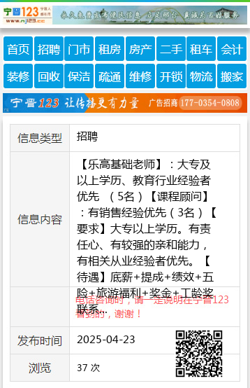 【要求】大专以上学历。有责任心、有较强的亲和能力,有相关从业经验者优先。
